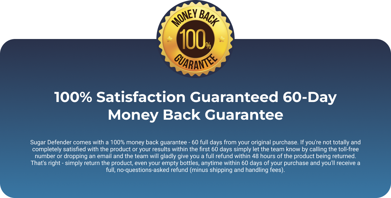 Every bottle of Sugar Defender comes with a full 60-day guarantee. You can try it out and see its improving effects on your blood sugar with absolutely no-risk whatsoever!